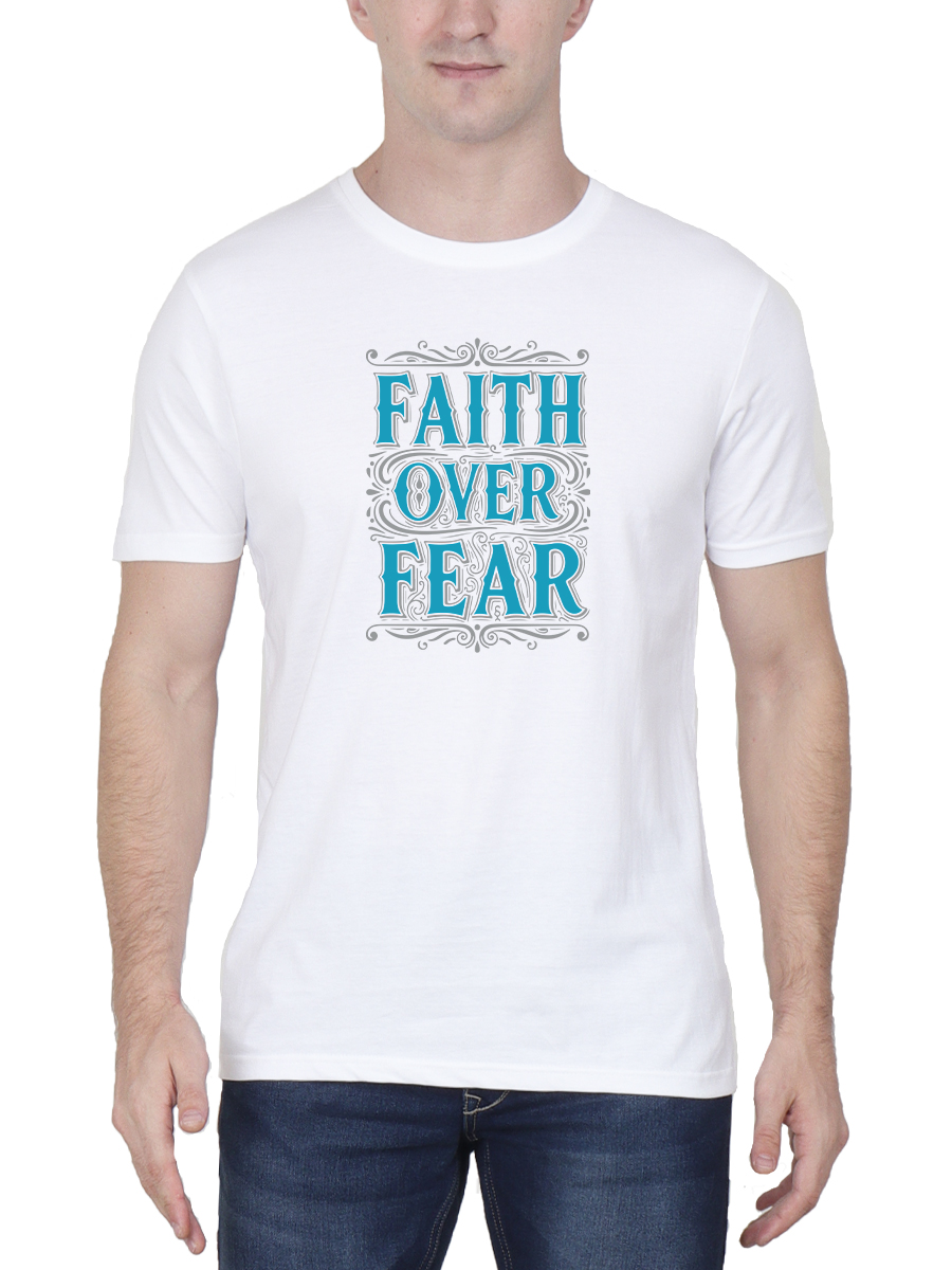 Faith Over Fear Printed T-Shirt For Men – Half Sleeve – Faith-inspired half-sleeve T-shirt with a powerful Christian message. Stylish, comfortable, and perfect for sharing your beliefs with the world.