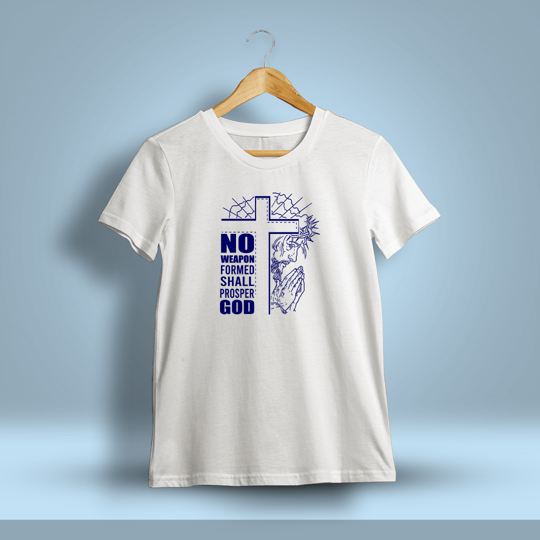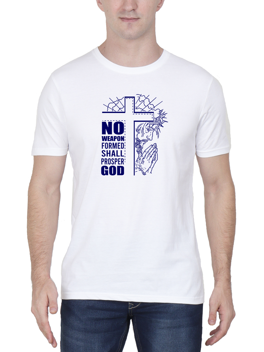 No Weapon Formed Shall Prosper God Printed T-Shirt For Men – Half Sleeve – Faith-inspired half-sleeve T-shirt with a powerful Christian message. Stylish, comfortable, and perfect for sharing your beliefs with the world.