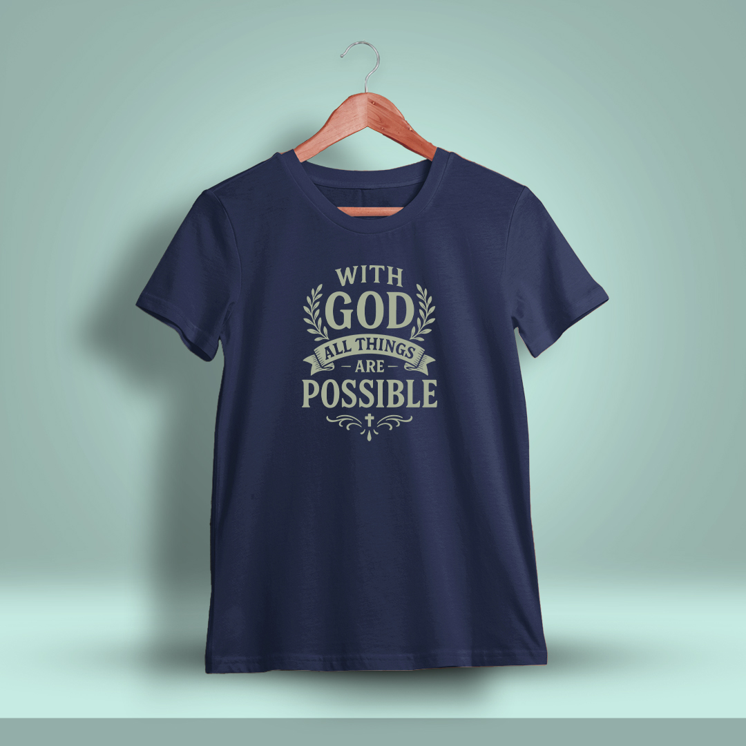With God All Things Are Possible Printed T-Shirt For Men – Half Sleeve – Faith-inspired half-sleeve T-shirt with a powerful Christian message. Stylish, comfortable, and perfect for sharing your beliefs with the world.